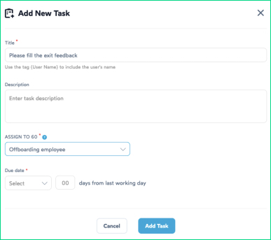 - Go to the offboarding settings and create a new task.