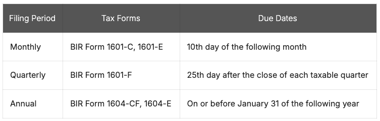 Staying compliant with Philippine tax regulations is crucial for businesses. Here's a breakdown of the key tax filings: